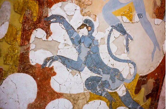 Frescoes depict a society with refined aesthetic sensibilities and complex social organization.