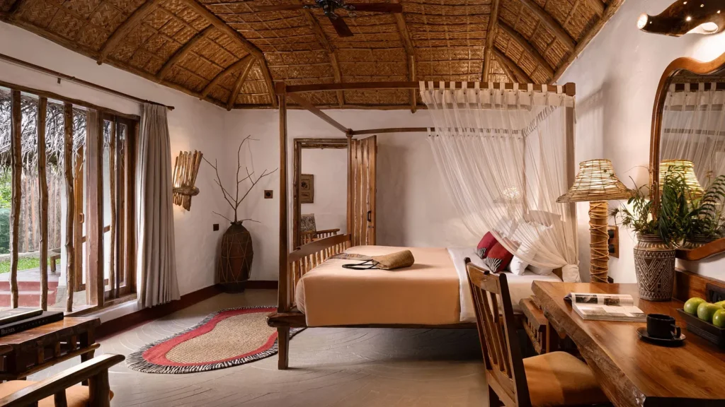 Perched along the serene banks of the Kabini River, The Evolve Back Kuruba Safari Lodge unfolds as an architectural homage to the indigenous Kadu Kuruba tribe that once inhabited these forests. This exceptional retreat occupies a privileged position at the confluence of natural splendour and thoughtful luxury, creating an experience that resonates with both conservation values and sophisticated comfort.